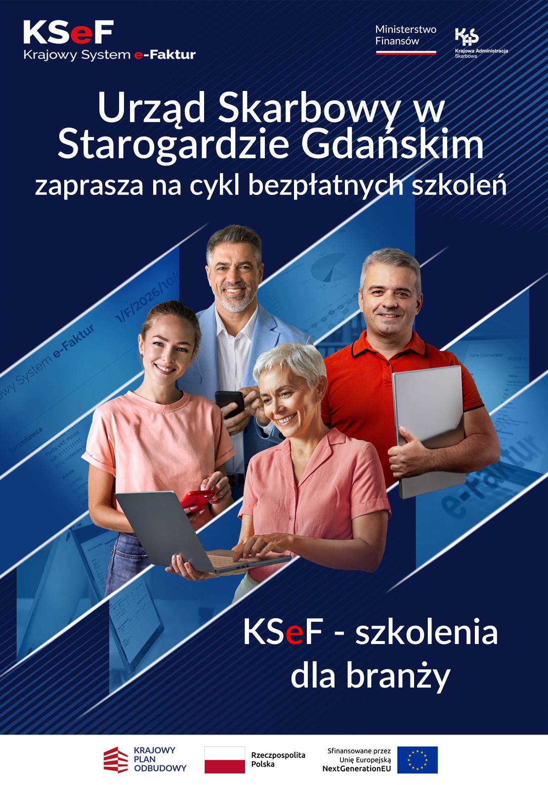 W ramach kontynuacji wsparcia przedsiębiorców Urząd Skarbowy w Starogardzie Gdańskim zaprasza na nowy moduł szkoleń dla przedstawicieli branż pn. „KSeF – szkolenia dla branży".